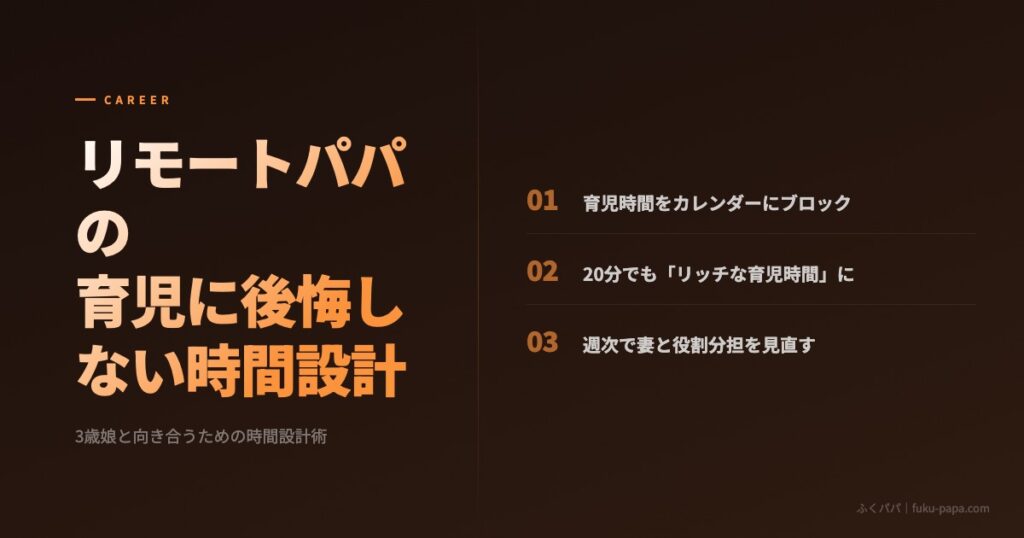 フルリモートパパが「育児に後悔しない」ための時間設計術【3歳児パパの実践】
