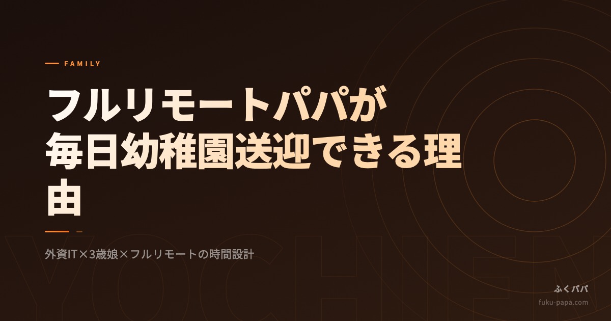 フルリモートだからといって自動的に育児参加できるわけではない。「送迎の時間は動かさない」という設計と、妻との役割分担ルール、突発対応のルールのセットではじめて機能する。
